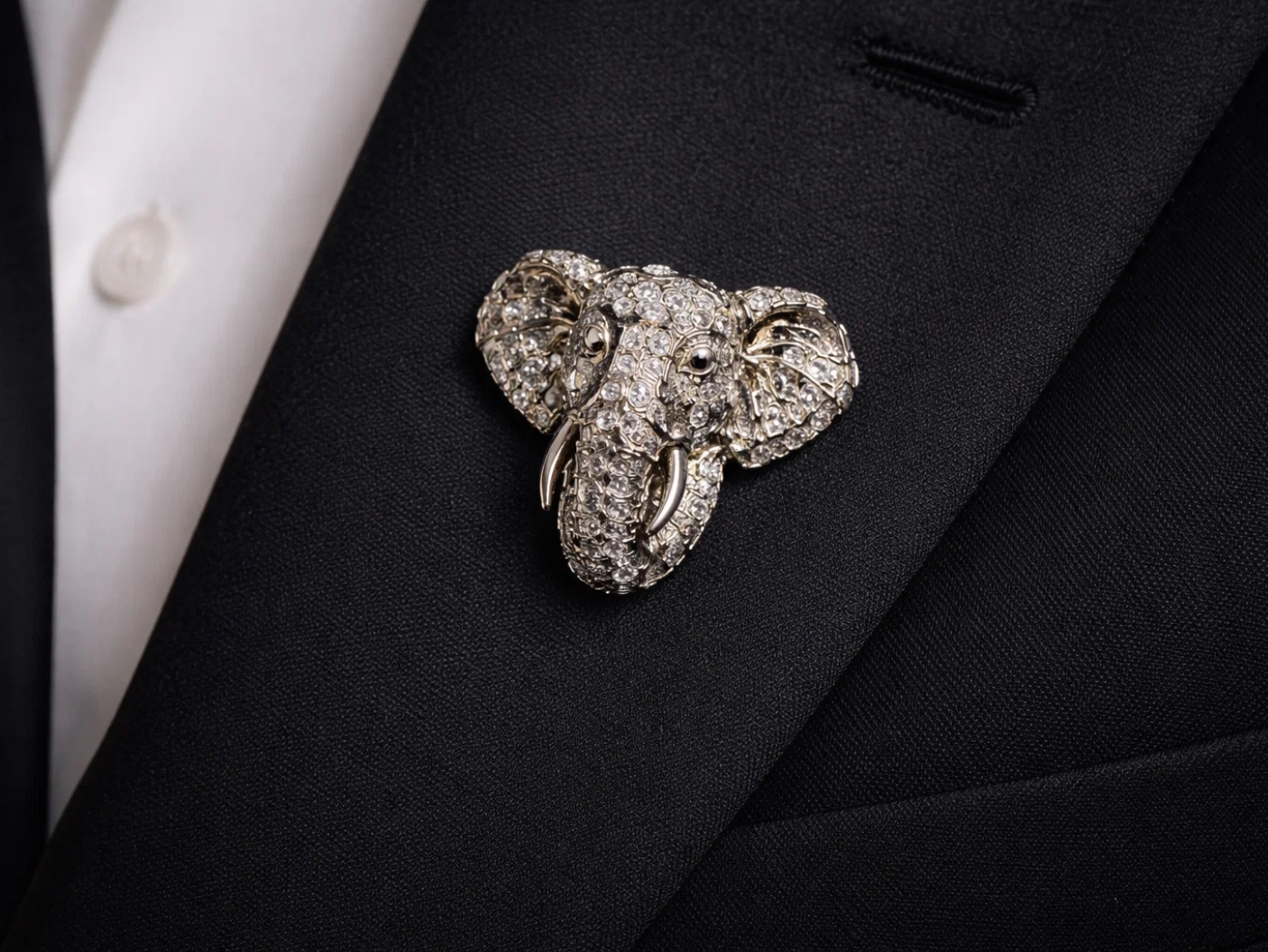 The Crystal Elephant Head Brooch is a distinctive accessory that represents power, wisdom, and good fortune. Crafted with intricate crystal detailing and elegant metallic accents, this brooch showcases a finely sculpted elephant motif with a regal finish. Its balanced and detailed design makes it ideal for sherwanis, bandhgalas, Nehru jackets, and statement blazers. Perfect for weddings, festive occasions, and special events, this brooch adds a meaningful and luxurious touch to men’s attire.