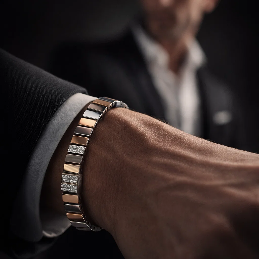 The Dual-Tone Swastik Chain Bracelet is a refined accessory that represents positivity, prosperity, and strength. Crafted with a polished silver-and-gold finish, the bracelet features intricately detailed Swastik motifs integrated into a sleek chain-link design. Its balanced blend of tradition and modern aesthetics makes it suitable for daily wear as well as festive and religious occasions. Comfortable, durable, and stylish, this bracelet pairs effortlessly with ethnic outfits, kurtas, and even smart-casual attire, making it a versatile addition to any men’s accessory collection.