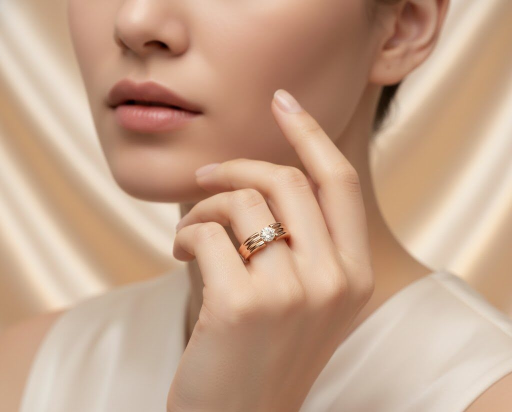 The Golden Trinity Solitaire Ring is a statement of refined minimalism and architectural elegance. Crafted with a distinctive triple-band design, this ring frames a radiant central stone that appears to float effortlessly between polished gold curves. The layered structure adds depth and dimension while maintaining a clean, contemporary profile. Designed for those who appreciate subtle luxury, this piece balances modern form with timeless brilliance, making it perfect for both everyday sophistication and special occasions.