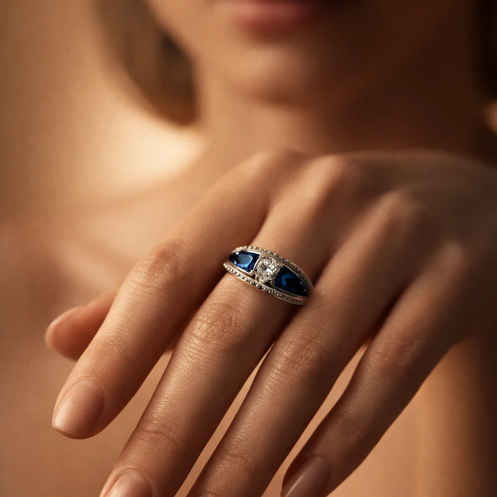 The Midnight Embrace Twin-Stone Ring is a bold expression of modern sophistication, designed to reflect depth, balance, and quiet allure. Featuring two deep-toned, marquise-cut stones set within interlinked, crystal-encrusted frames, this ring creates a graceful infinity-inspired silhouette. The contrasting brilliance of the pavé detailing and the dark, luminous stones adds a dramatic yet refined presence, making it an ideal statement for evening wear or elevated contemporary styling. Crafted for those who appreciate distinctive design, this piece embodies elegance with a touch of mystery.