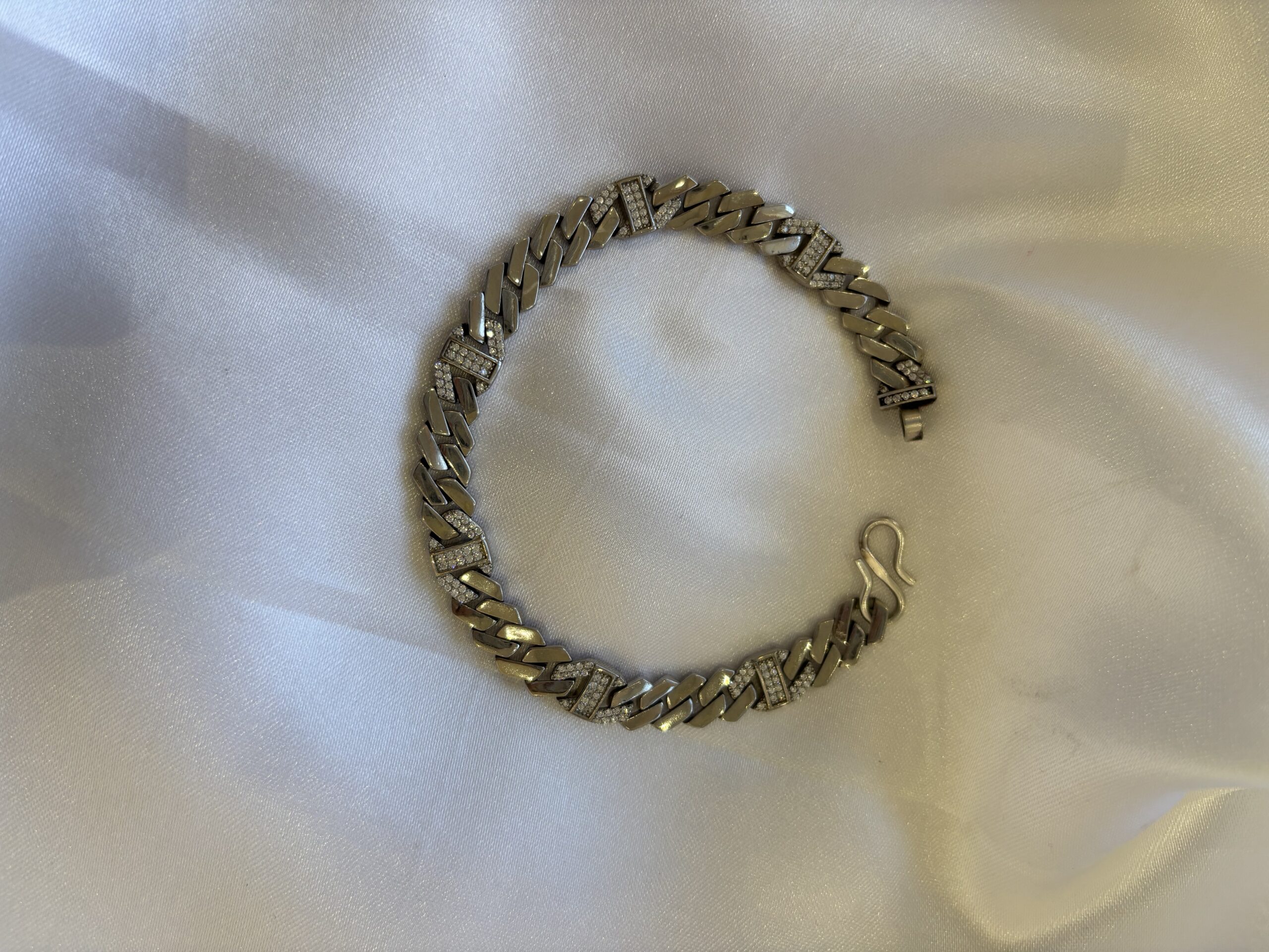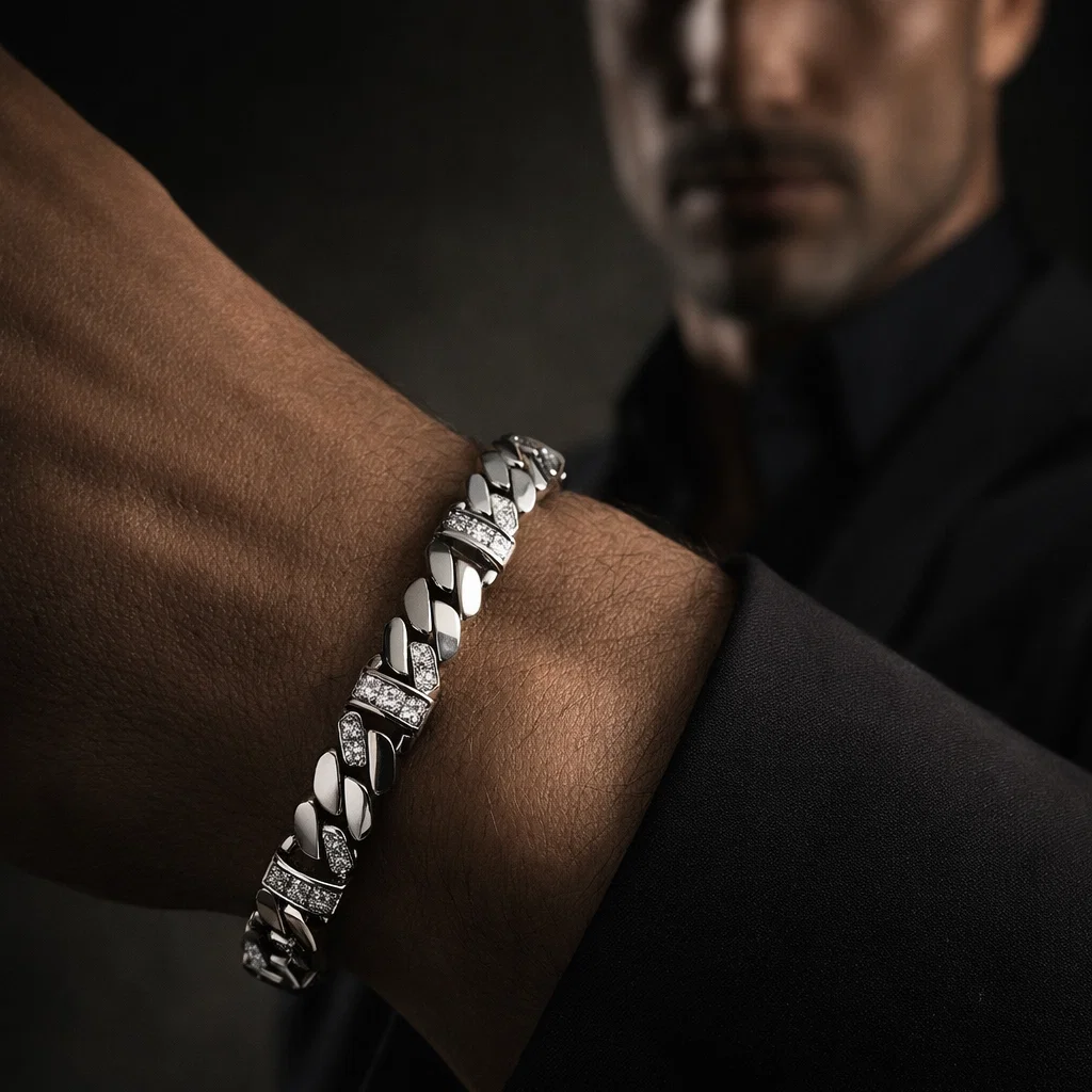 The Silver-Tone Crystal Link Bracelet is a statement accessory that blends modern masculinity with elegant detailing. Crafted with polished metal links and highlighted by crystal-studded connectors, this bracelet offers a premium look with a strong presence. Its sturdy clasp and structured design make it suitable for both daily wear and special occasions. Perfect to pair with formal attire, festive outfits, or smart-casual looks, this bracelet adds a confident and stylish edge to any men’s wardrobe.