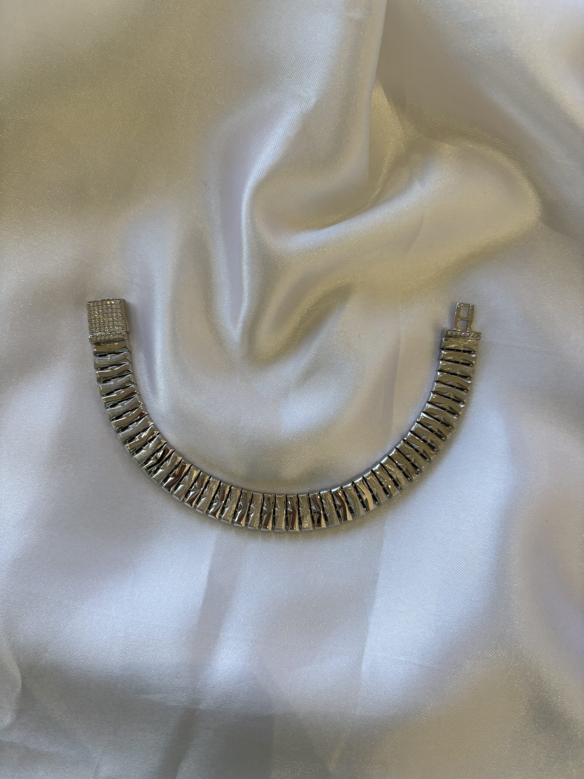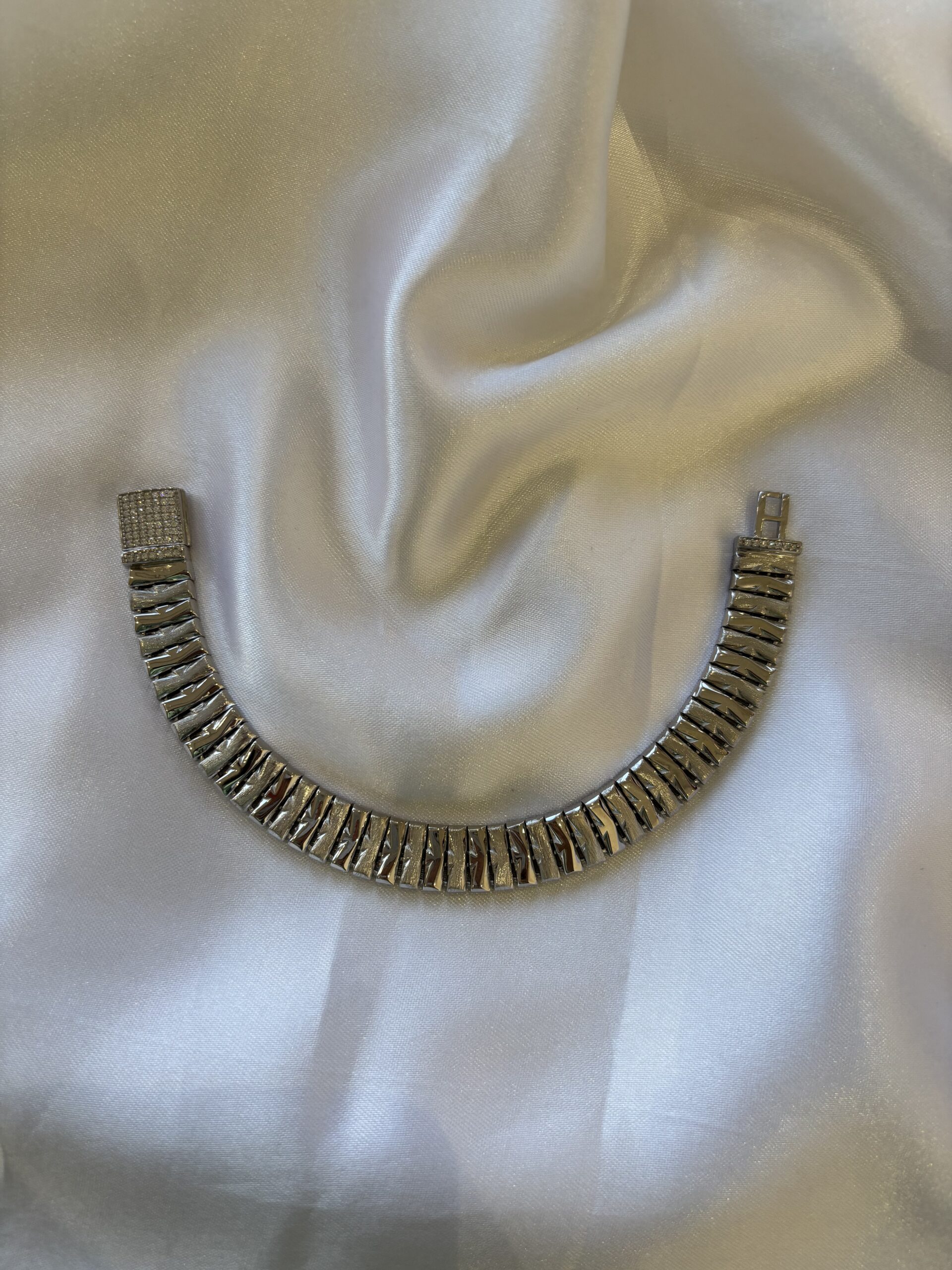The Silver-Tone Structured Link Bracelet is a statement accessory crafted for modern men who appreciate precision and strength in design. Featuring uniformly aligned metal links with a polished finish, this bracelet offers a solid, masculine appeal. The crystal-studded clasp adds a subtle touch of luxury while ensuring a secure fit. Perfect for pairing with formal wear, ethnic outfits, or smart-casual looks, this bracelet is ideal for daily wear as well as special occasions where understated elegance matters.