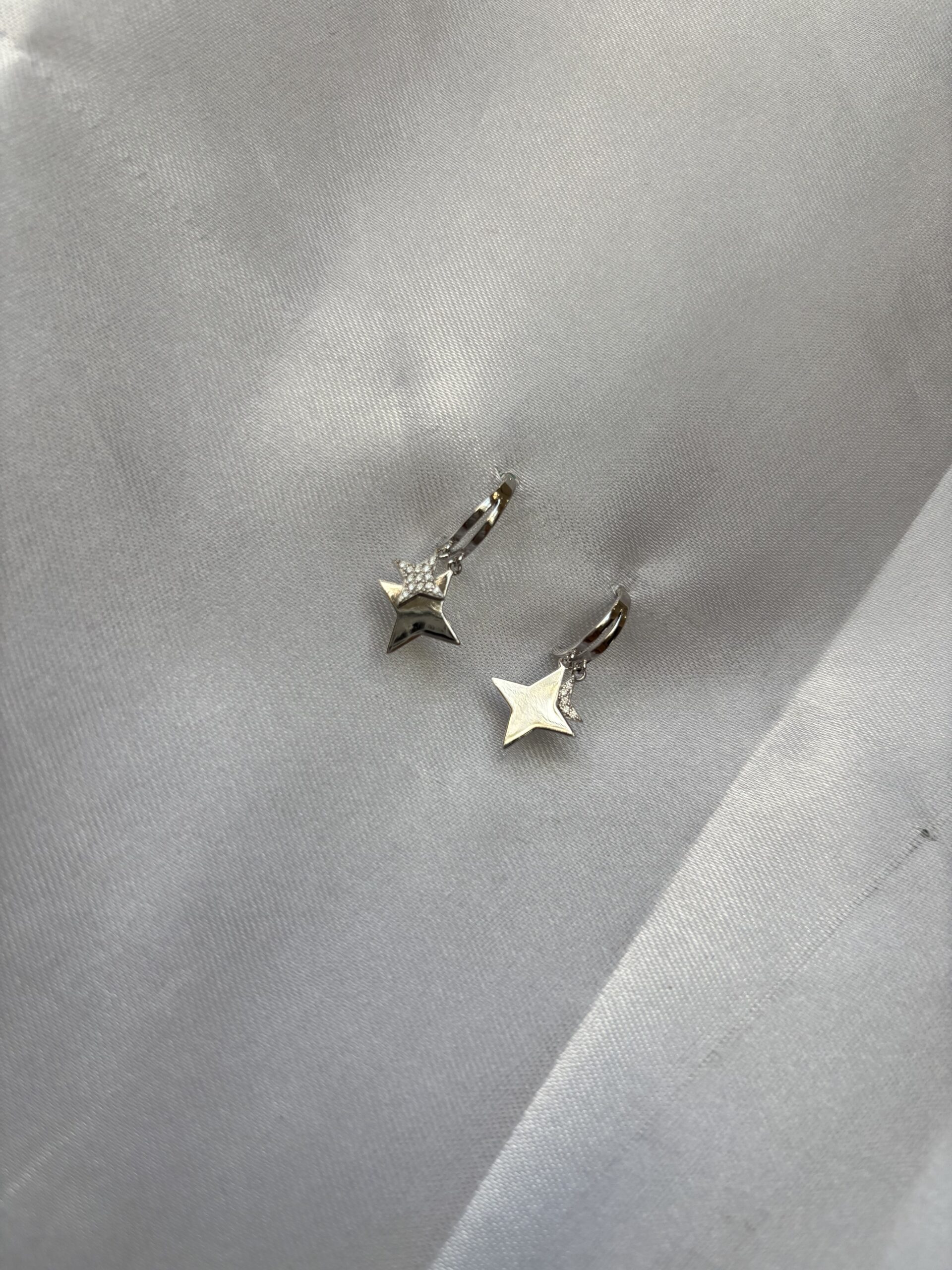 The Starlight Whisper Drop Earrings capture the quiet magic of a night sky in a refined, modern silhouette. Featuring polished silver-tone hoops paired with delicate star-shaped charms, these earrings shimmer softly with every movement. A subtle touch of crystal detailing adds a graceful sparkle, making them perfect for both everyday elegance and evening sophistication. Lightweight and beautifully balanced, this pair brings a celestial charm to any look.